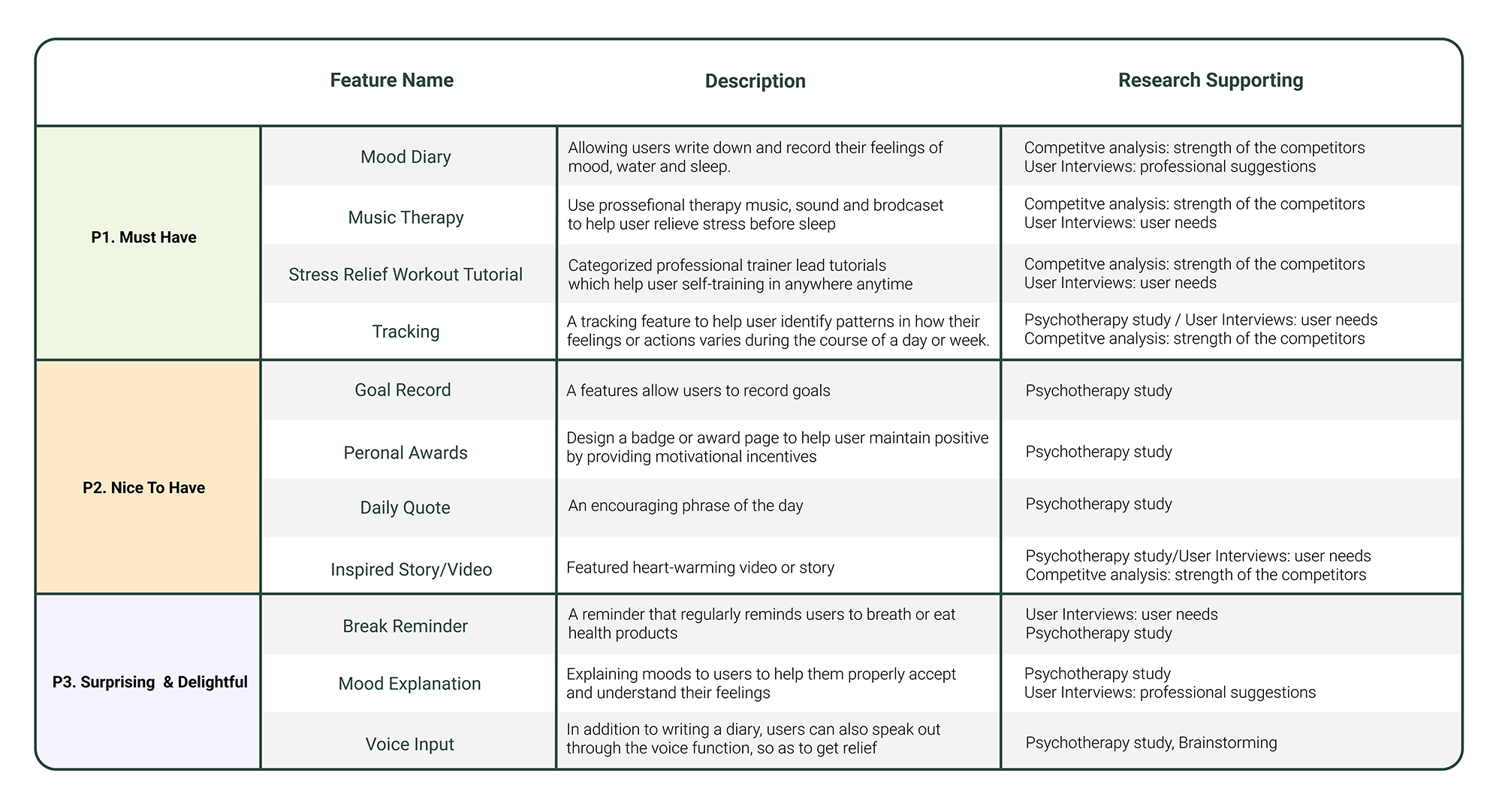 Last, to better plan out the order of features, I prioritized answers from “Must Have” to “Surprising & Delightful” based on user choices.
