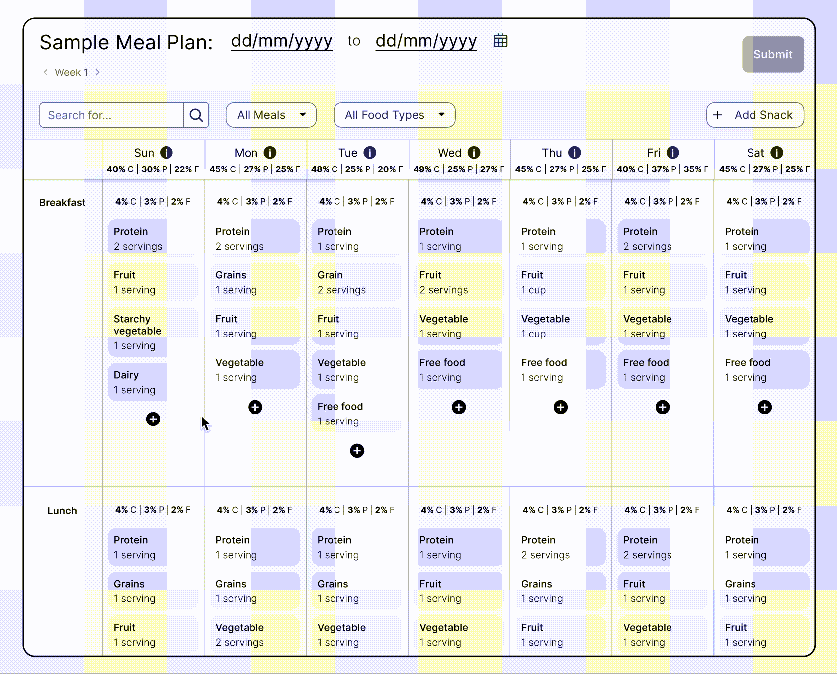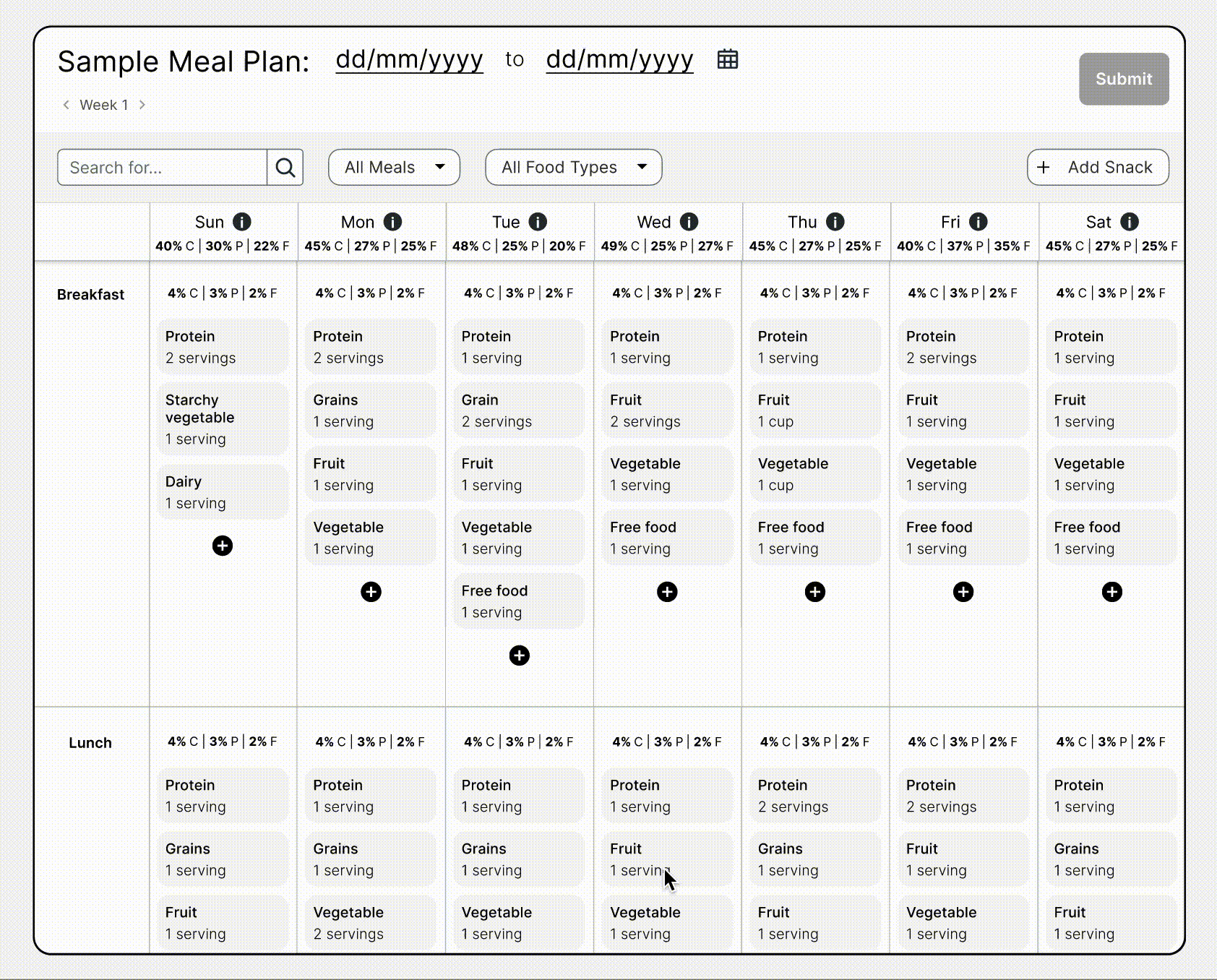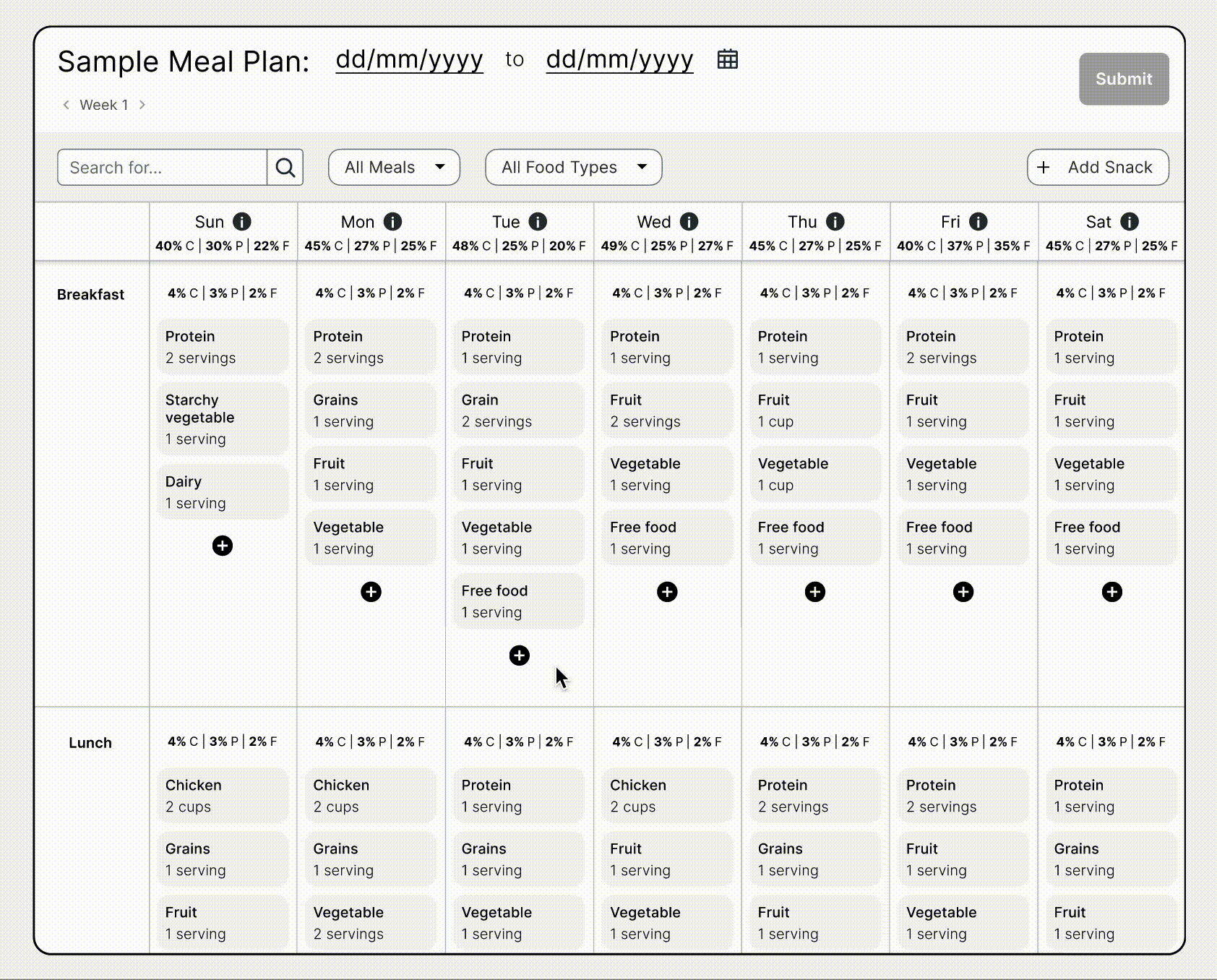 Our goal is to empower patients to choose their own diet plan that suits their preferences and needs. Therefore, we have designed three options for them to select from. These options will enable them to adhere to the plan more efficiently and enjoy using our product.