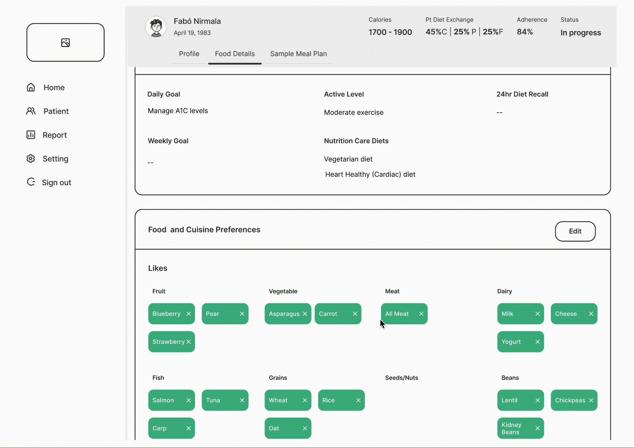 Assist dietitians in better understanding the patient's dietary needs, habits, and feedback and delivering feasible and sustainable meal plans.