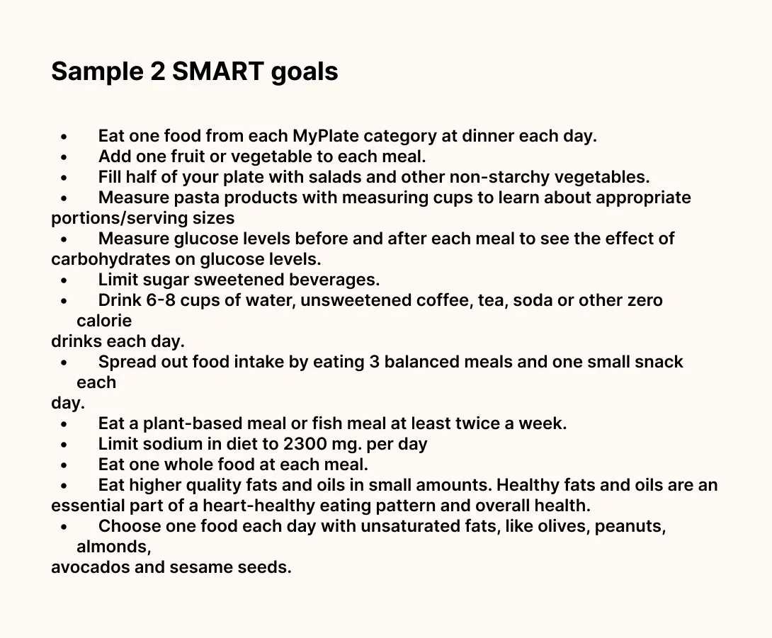 In order for patients to have accurate diet advice, we can also provide guidance on appropriate portion sizes and how to incorporate a variety of foods from each food group. In the long term, showing recipes might be the better decision.