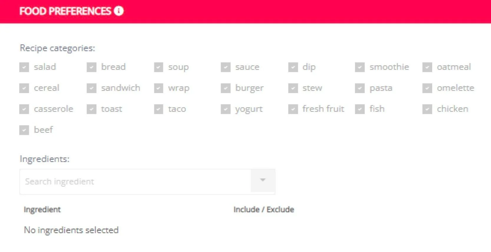 We changed the tone around meal plans as guidelines based on IFSAC Food Categorization Scheme. To make things even easier, the new recommender model intakes RD food group templates, RD prepared menu plan combos, and recommends Food Group and Ingredient level meal plans, NOT recipes. Patients can use ingredients from similar food groups to substitute/exchange foods and explore matching recipes to the ingredient-level meal plan. The new model would